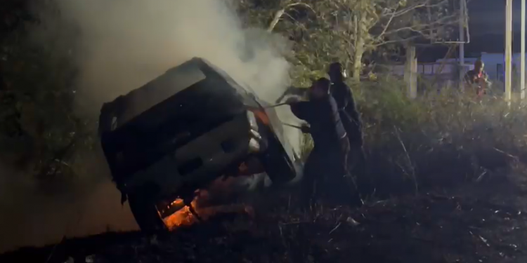 Dyshohet se një shkëndijë elektrike ka shkaktuar flakën në automjet dhe më pas drejtuesi e pasagjeri e kanë braktisur, teksa makina përfundoi në një kanal.