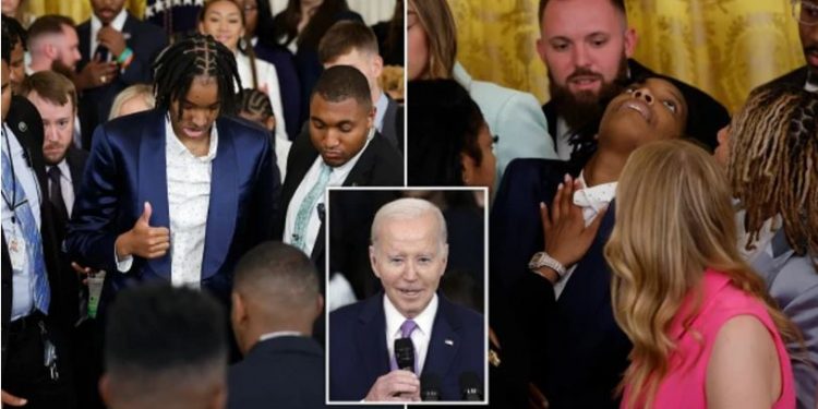 LSU women’s basketball player Sa’Myah Smith faints while President Biden delivers remarks at the White House. pic.twitter.com/hKRccCBGou