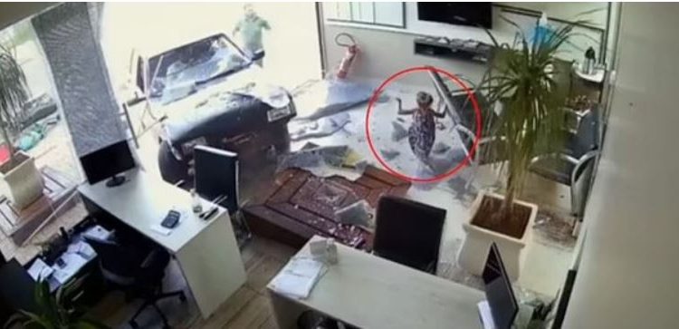 Një vajzë pesë vjeçare ka shpëtuar mrekullisht dëmtime, veç disa të vogla, pasi ajo u godit nga një shofer i dehur që hyri brenda ndërtesës.