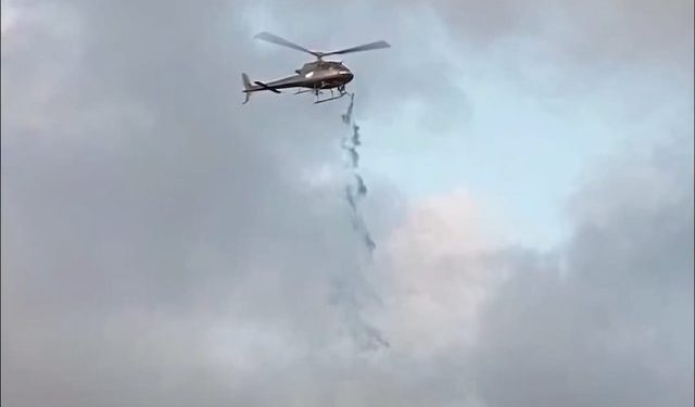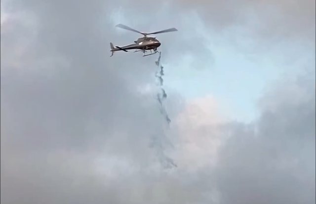 Një lëndë me ngjyrë blu në të gjelbër është hedhur nga një helikopter në zonën e Fresk në Tiranë, duke shkaktuar panik te banorët.
