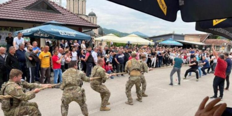 Në kuadër të kësaj sot ushtarët amerikanë të KFOR-it dhe qytetarë serbë kanë garuar në “tërheqje të litarit”.