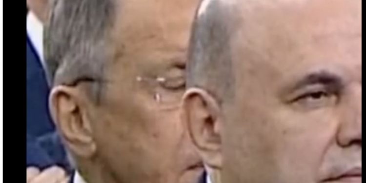 Fjalimi i Presidentit rus Vladimir Putin duket se ka përgjumur të gjithë të pranishmit. Në rreshtin e parë, ka qenë vetë i besuari i Putin për Ministrinë e Jashtme Sergei Lavrov, i cili është kapur nga kamerat duke mos i rezistuar dot përgjumjes.