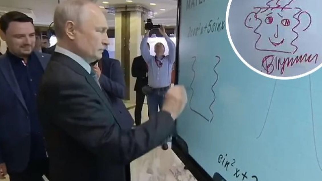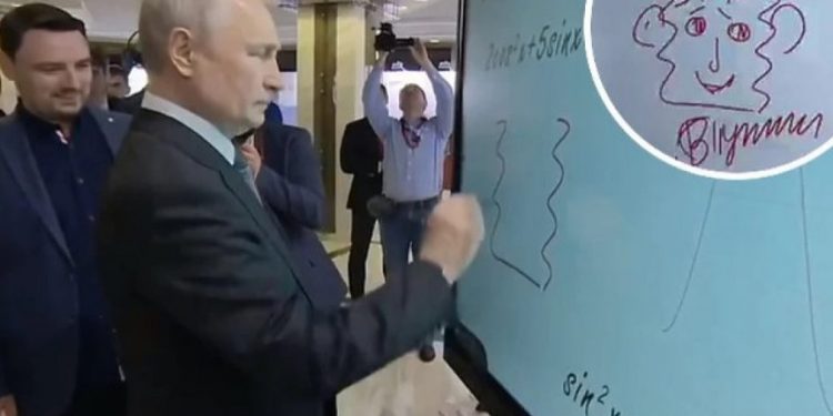 Presidenti rus Vladimir Putin mori pjesë në “Forumin e Iniciativave Strategjike”, të enjten dhe organizatorët i kërkuan atij të vizatonte diçka në një tabelë.