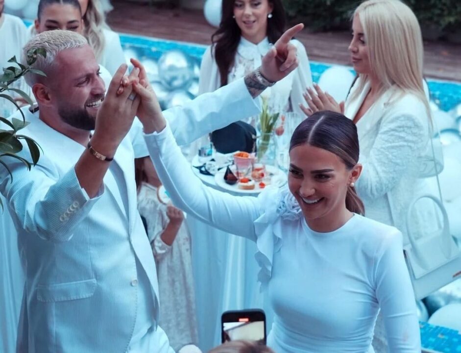 Luizi dhe Kiara kanë organizuar disa ditë më parë në fshehtësi një festë me familjarët dhe miqtë e tyre të afërm për të zbuluar gjininë e bebit, ku të gjithë ishin të veshur me të bardha dhe në një ambjent të hapur.