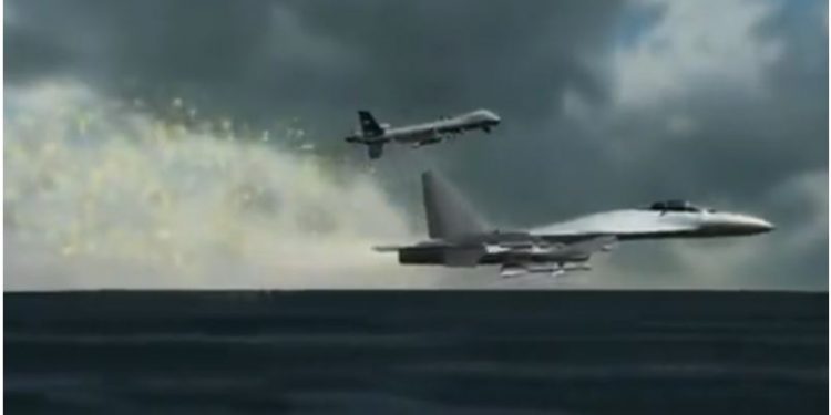? CBS channel showed a video reenactment of how a Russian #Su27 fighter jet shot down an American #MQ9 Reaper. pic.twitter.com/pRO9tPcxM7