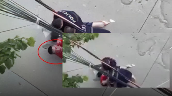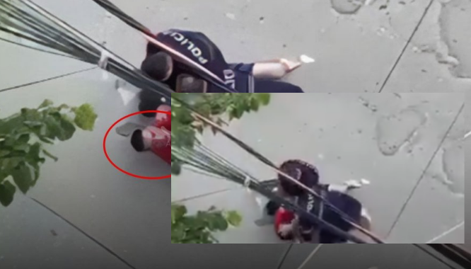 Video e publikuar nga JoQ shfaq momentet kur policët e shtrijnë të riun në asfalt, e shajnë dhe e godasin.