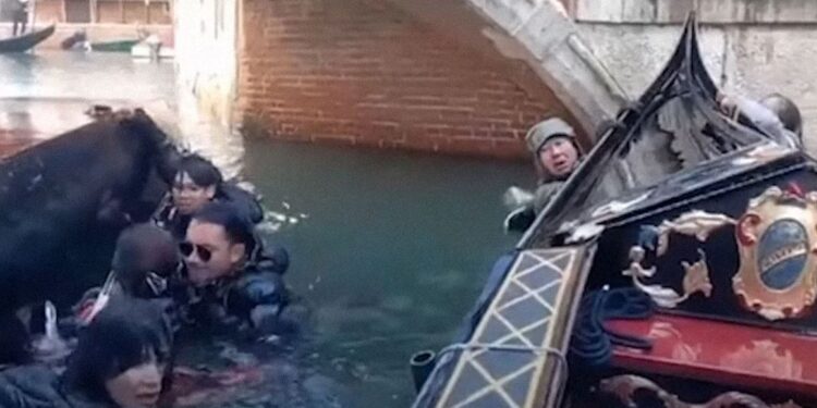 Një grup turistësh ranë në një kanal në Venecia kur gondola me të cilën po hipnin u përmbys pasi ata injoruan udhëzimet e gondolierit për të ndaluar së bërë selfie dhe për të ulur vendet e tyre.
