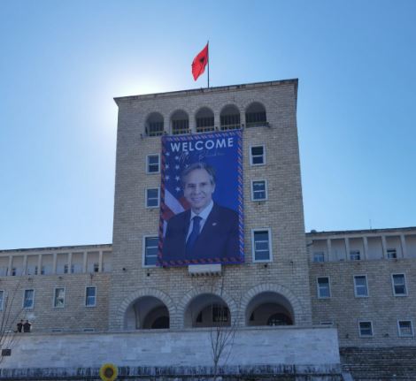 Sekretari amerikan i Shtetit, Antony Blinken do të vizitojë të enjten për herë të parë Shqipërinë. Një ditë para kësaj vizite të rëndësishme të numrit dy të administratës së SHBA, rrugët e kryeqytetit janë ‘veshur’ me flamuj amerikanë ndërkohë që një poster gjigant është vendosur te Universiteti Politeknik.