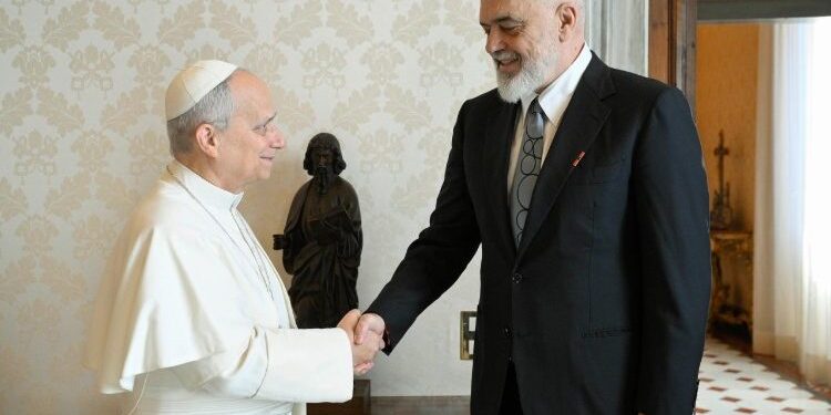 Kryeministri Edi Rama u prit paraditen e sotme nga Papa Leone XIV në kuadër të vizitës që po zhvillon në Vatikan. Kreu i qeverisë shoqërohej nga bashkëshortja Linda Rama dhe djali i tyre, Zaho.