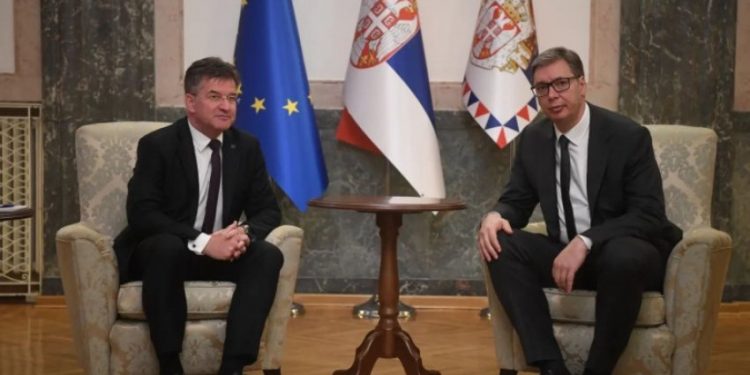 Presidenti i Serbisë, Aleksandar Vuçiç, është takuar me përfaqësuesin special të BE-së për dialogun ndërmjet Beogradit dhe Prishtinës, Miroslav Lajçak, me të cilin ka diskutuar për situatën në Kosovë dhe mënyrat e deeskalimit në veri.