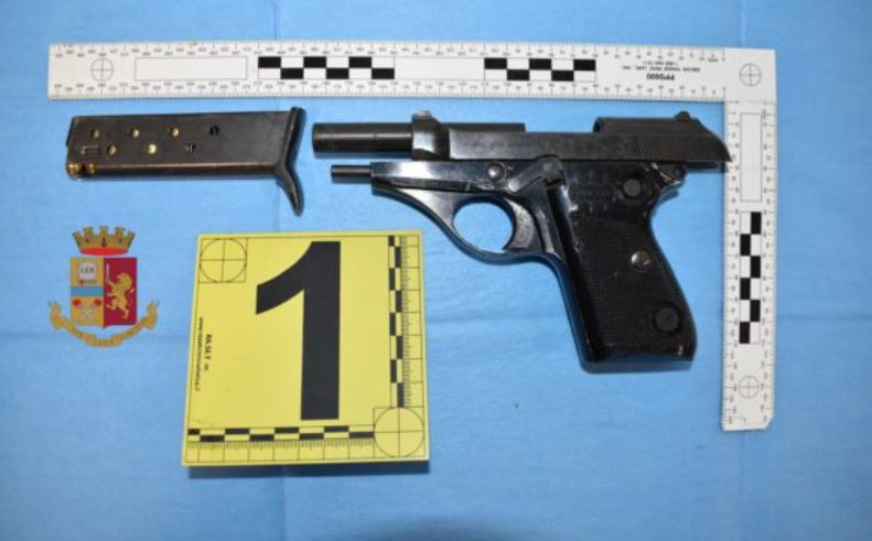 Një pistoletë Beretta kalibri 7.65 me një karikator dhe gjashtë fishekë u gjet në shtëpi; një pistoletë Beretta 9 mm me një karikator me trembëdhjetë fishekë, e raportuar e vjedhur në Quarrata në dhjetor 2021; një pistoletë e modifikuar me qitje bosh pa informacion identifikues; një revolver 5.7 mm me pesë fishekë; dhe një pistoletë me qitje bosh të markës Bruni, kalibri 8 mm, një kopje e saktë e një Glock me një karikator të futur dhe tridhjetë fishekë.