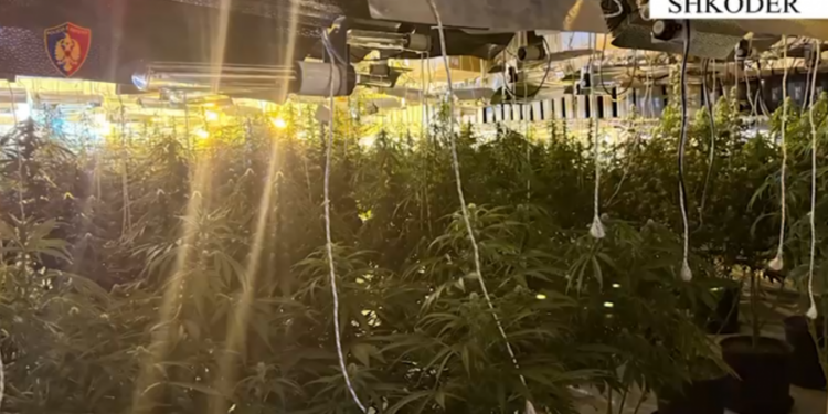 Në Shkodër është zbuluar një ambient i fshehtë i përshtatur për kultivimin e kanabisit brenda një tuneli në lagjen “10 Korriku”.