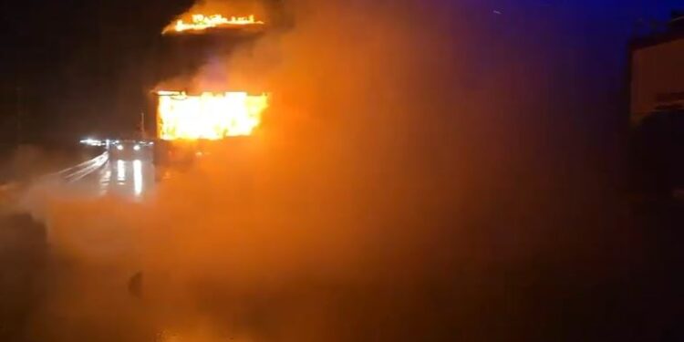 Një trailer-autobot që transportonte karburant është përfshirë nga zjarri mbrëmjen e djeshme në Rrugën e Kombit, në kilometrin e 34-të të autostradës.